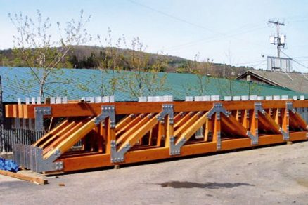 Pásnice s diagonálami možno spojiť takisto aj pomocou svorníkového spoja so sponami. Pri tomto type styčníkov sa vyžaduje, aby boli prúty navrhnuté ako dvoj- alebo trojdielne. Konštrukcia je zoskrutkovaná v osiach prútov. Spoj sa dopĺňa ozubenou sponou typu Bulgog. Priehradové nosníky tohto typu sa vyhotovujú z fošní s hrúbkou 50 až 80 mm a výškov 140 až 240 mm. Možno ich použiť aj pre rozpätia nad 12 m.