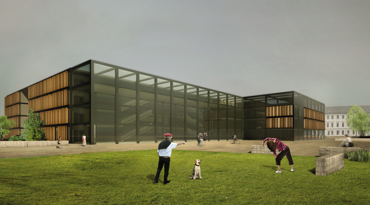 1. miesto | Projekt vychádza z pozoruhodného architektonického plánu, inšpirovaného rozvrhom historického plánu mesta. Projekt bol veľmi dobre prezentovaný a jasne oddelil hlavné jadro vlastnej sály od vedľajších priestorov a zázemia. Porota okrem toho ocenila aj spôsob, akým sa v oboch častiach pracuje s modulárnou architektúrou. Budova, vrátane vedľajších priestorov, svojím tvarom odkazuje na historické mestské hradby a môže byť jednoducho modifikovaná, s ohľadom na prípadné budúce potreby a nároky, napríklad pripojením ďalších modulov.