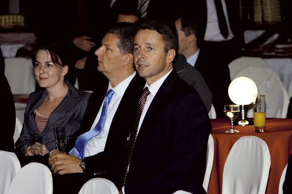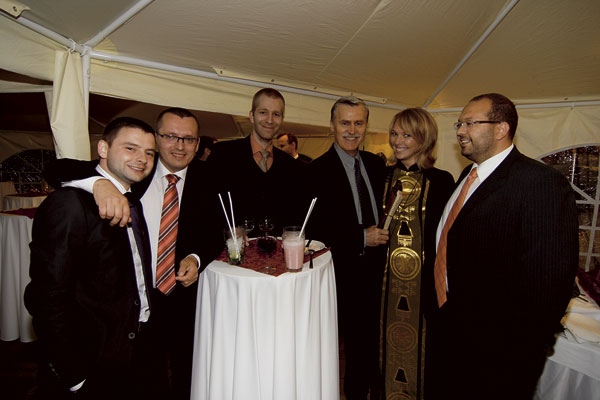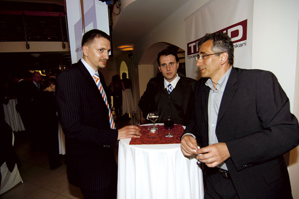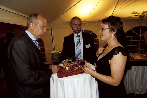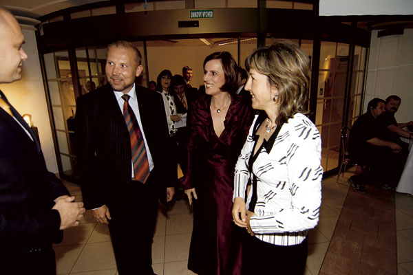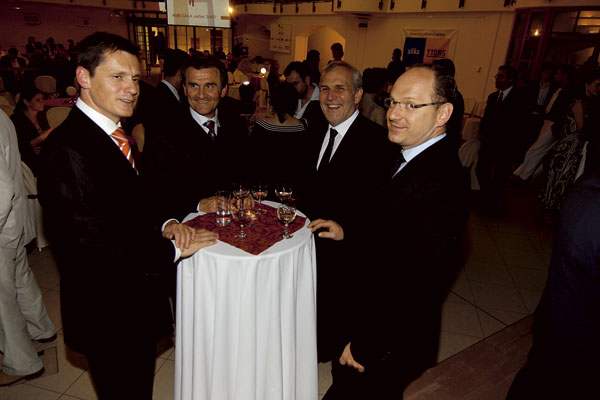 | Riaditeľ marketingu vo firme Baumit Tomáš Sepp (v strede) s manželkou Ľudmilou a s riaditeľom spoločnosti Generálny investor Bratislavy Kamilom Beladičom | Silná zostava: zľava Martin Polák, generálny riaditeľ Xella Slovensko a Xella CZ, Anton Viazanko, generálny riaditeľ DURISOL-STAV, František Kmiť, konateľ Xella Slovensko, a Miloš Klein, konateľ Wienerberger Slovenské tehelne