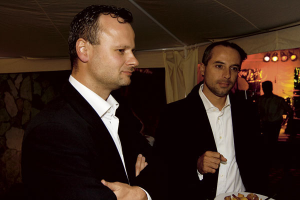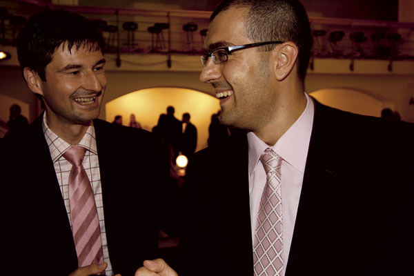 | Juraj Masný (vľavo) a Richard Hamar z HB Reavis | Jana Varinská, riaditeľka odboru realít v Zipp Bratislava prišla na ASB GALA večer s konateľom Zipp Bratislava Františkom Hirnerom. Za nimi prichádza architekt a podnikateľ Pavol Kollár, nominovaný v kategórii ASB – Osobnosť architektúry a stavebníctva roka 2007