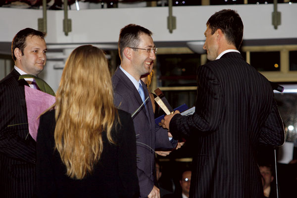 Titulné foto: Ocenení na premiérovom ASB GALA večere 2007: zľava v kategórii ASB – Developer roka 2007 Peter Korbačka, predseda predstavenstva J&T REAL ESTATE, v kategórii ASB – Stavebná firma roka 2007 Miroslav Trnovský, konateľ SKYBAU, a v kategórii ASB – Osobnosť architektúry a stavebníctva Miroslav Maťaščík, konateľ Alfa 04