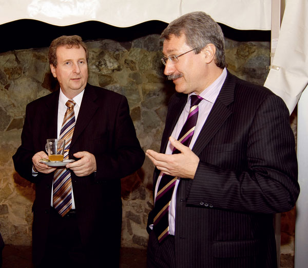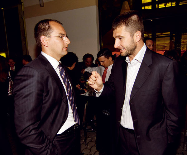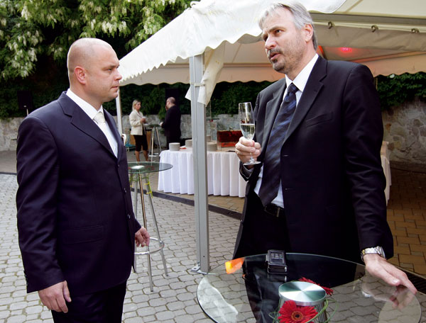 | Riaditeľ vydavateľstva JAGA GROUP Peter Halász s generálnym riaditeľom spoločnosti Ipec Group Ivanom Čarnogurským. |