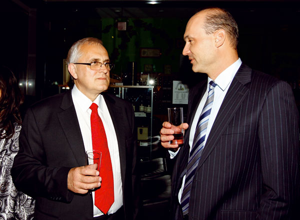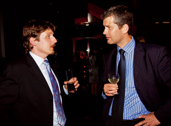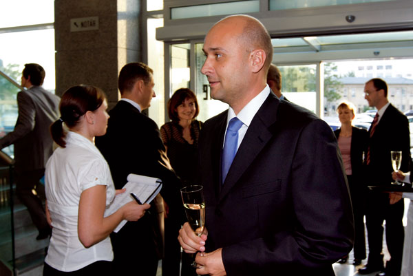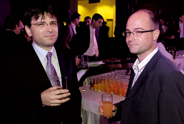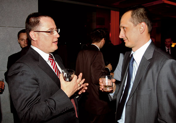 | Zľava – Peter Korbačka , predseda predstavenstva J&T Real Estate, Radoslav Jakab, vedúci odboru financovania nehnuteľností v Slovenskej sporiteľni, a Ing. Pavel Pelikán, výkonný riaditeľ J&T Real Estate | Juraj Škorvánek (vľavo), obchodný riaditeľ spoločnosti Ingsteel, s Romanom Tožičkom, riaditeľom divízie obchodných činností v spoločnosti Hetech Services |