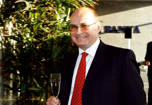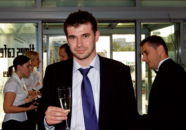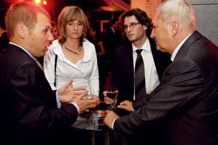 | Imrich Béreš, predseda predstavenstva Prvej stavebnej sporiteľne, s partnerkou Janou Machatovou | Zľava – Pavol Fabišík, konateľ spoločnosti ABB, Slavomír Seman, obchodný manažér ABB, Štefan Pindroch, obchodný manažér ABB a Pavel Pelikán, výkonný riaditeľ J&T Real Estate |