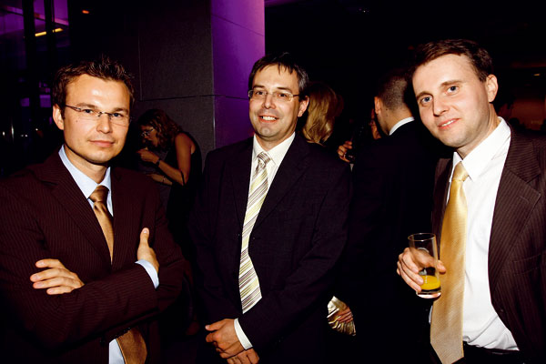 Víťazi internetového hlasovania ASB Gala večer 2009. Zľava – Dušan Fischer (ASB Osobnosť architektúry a stavebníctva 2009), Patrícia Hradilová (zástupkyňa spoločnosti Ballymore Properties, víťaza kategórie ASB Developer roka 2009) a Miroslav Trnovský (generálny riaditeľ spoločnosti SkyBau, ktorá zvíťazila v kategórii ASB Stavebná firma roka 2009) |