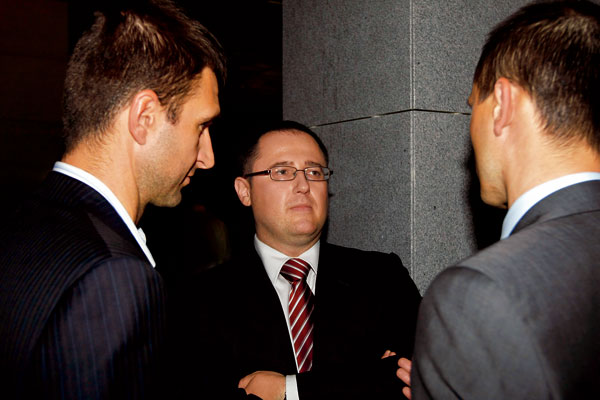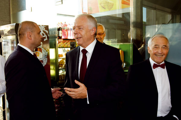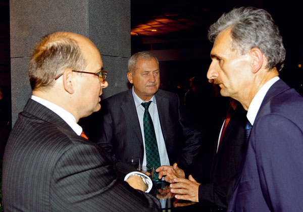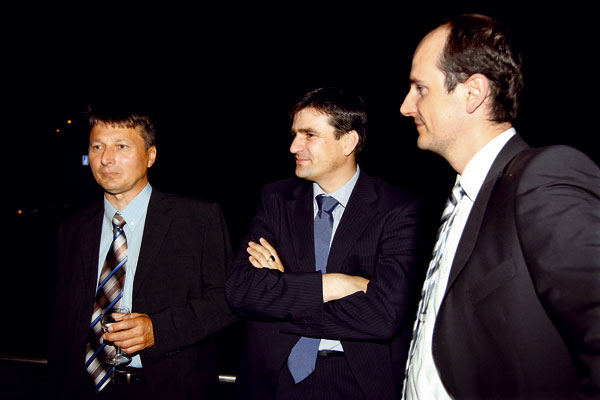 | Dušan Šamudovský (v strede), generálny riaditeľ Doprastavu, vpravo Miroslav Trnovský, konateľ spoločnosti SkyBau, vľavo Peter Halász, konateľ vydavateľstva JAGA | Andrej Šišolák, riaditeľ spoločnosti Sika Slovensko |