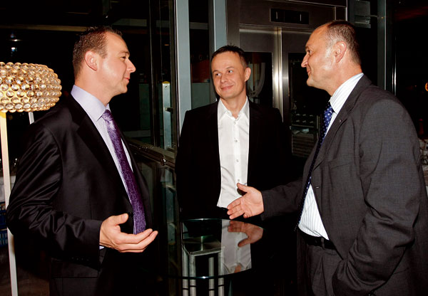 | Peter Molitoris (vľavo), manažér Orion International, s Erikom Heidemom senior manager VVMZ Tourism & Leisure | Peter Halász (vľavo), konateľ vydavateľstva JAGA, a Rudolf Šebo, konateľ spoločnosti Ravago Bratislava |