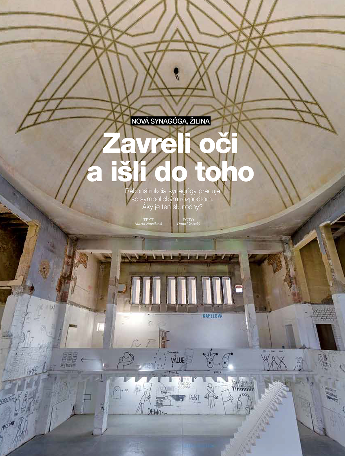Pri rozhovore o rekonštrukcii žilinskej synagógy si Marek Adamov, ktorý je hlavným ťahúňom a dušou celého projektu, povzdychol, že ľudia v Žiline považujú za pamiatku romantický Rosenfeldov palác oproti synagóge. Ten obdivujú. Synagógu z roku 1931, postavenú v modernom duchu nemeckým architektom Petrom Behrensom, mnohí obyvatelia mesta a predstavitelia miestnych firiem dlho nepovažovali za pamiatku hodnú úsilia, ochrany a záchrany či podpory týchto aktivít vôbec. Je to jeden z mnohých dôkazov o tom, že pamäť ľudí žijúcich na Slovensku je veľmi selektívna, pamätáme si len to, čo sa nám páči a čo vyvoláva príjemné asociácie.