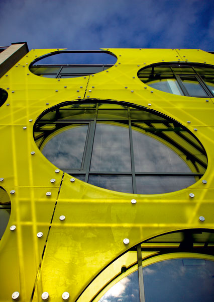 Pravdupovediac, veľmi sme nad tým nešpekulovali. Od začiatku nás viedlo odhodlanie, že to jednoducho chceme spraviť, aj keď sme museli presviedčať vlastného statika. Nebol priestor na pochybnosti. Nechceli sme sa vzdať predstavy, s ktorou sme vyhrali súťaž a ktorú si obľúbil aj investor. Ani jeden z tradičných materiálov však nášmu riešeniu nevyhovoval – sklo bolo príliš ťažké, sieťka vyzerala lacno, plachta neesteticky… Jediným materiálom s potrebnými vlastnosťami bol plast. Tým sa položili mantinely a my sme boli nútení urobiť výskum, lebo ináč by sme fasádu neboli zrealizovali podľa našich predstáv.
