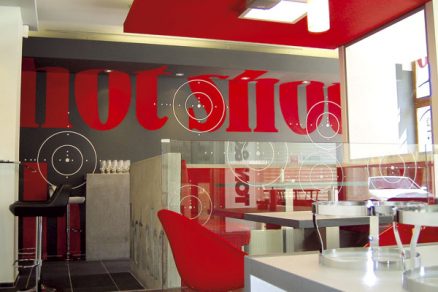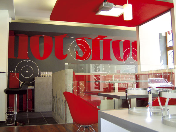 Kaviareň Hot Shot na bratislavskom Námestí SNP je z iného súdka. Zelenú, žltú a hnedú z Grandes Melones vystriedala červená a najmä sivá farba z pohľadového betónu. Stavebná technológia sa objavila nielen na stolíkoch, ale dokonca aj na barovom pulte. Avšak s takou razanciou, že mladá investorka nadšene súhlasila s industriálnym návrhom a prevádzka dáva tomuto príklonu za pravdu. Chladný betón je preteplený drevom, ale iba v primeranom množstve – tak, aby to bolo stále „cool“.