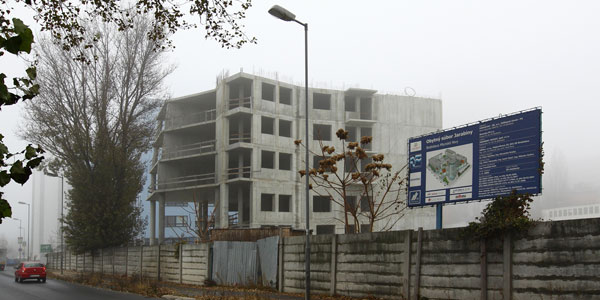Ďalšou zastávkou je betónová nádhera na Šancovej ulici, hneď pri Ymke. Táto budova, ktorá sa hrdí spojením s kresťanskými mladíkmi, by tiež potrebovala radikálny zásah v podobe rekonštrukcie, ale nie o nej chcela byť reč. Nerozhodný investor, ktorý namiesto ponúknutého prstu chcel hneď zhltnúť celú ruku (táto krvavá vidina sa nám hodí do scenára), môže teraz výhodne prenajímať strašidelný skelet na megaboardy. A to sa niektorí rodičia báli dať svoje ratolesti do materskej školy na Beskydskej, že budú mať deti na dvore stavebný ruch. Za to, že im nedokončená betónová obluda tieni popoludňajšie slnko, funguje aspoň trochu ako zvuková bariéra od hlavnej cesty.