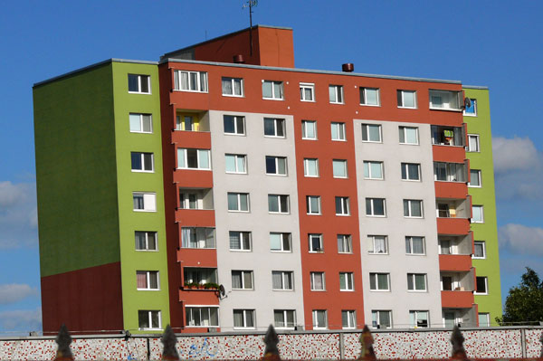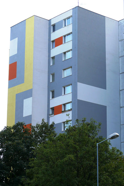 Tento text ani zďaleka nemá byť namierený voči estetickej renovácii sídliskového zovňajšku. Skôr voči tomu bez-estetickému. Vôbec je zaujímavé, ako dokáže taká zmena fasády premeniť aj okolie v ktorom sa nachádza, a napriek tomu je zverená prakticky do rúk jedincov. A navyše jedincov väčšinou bez urbanisticko-estetického cítenia, ako ukazuje niekoľko príkladov. Popri nich sa však ukázalo aj zopár takých, ktoré naopak výborne ilustrujú skvalitnenie architektonického komplexu. Napríklad tým, že sa ponechá pôvodné farebné riešenie zdôrazňujúce architektonické prvky (lodžie, niektoré konštrukcie, parter …). Poprípade sa takáto farebnosť vytvorí. Práve v dôraze tkvie moc farebnosti – môže vyzdvihnúť, potlačiť či celkom zmeniť. Žiaľ neodbornosť zadávateľov hľadí skôr na výnimočnosť a zaujímavosť. Akoby sa opäť vrátili k barokovému potvrdzovaniu spoločenského statusu prostredníctvom výzdoby architektúry. Tá baroková však vždy viac či menej komunikovala s daným prostredím a skôr podporovala ambície stavby, ako by ich rušila. To pre väčšinu nanovo „nahodených“ panelákov neplatí. Naopak, rôzne pestré vzory, najčastejšie pásy, menia rytmiku aj vizuálne pôsobenie hmoty. Kým hmota zdôraznila vertikálnu komunikáciu, napríklad schodište, maliarske štetky jej položia do cesty nejednu horizontálnu prekážku. Ak fasáda túžila iba po čistote členenej len okennými otvormi, so zdôrazneným vstupom, „módni návrhári“ zatúžili po bohatšom, a najlepšie asymetrickom členení. Potom príjemne prekvapí stretnutie s jemným farbeným doplnkom, ktorý napríklad vyzdvihne rytmiku okenných otvorov, či iných architektonických prvkov. Najčastejším prípadom decentného, a pritom podporujúceho, narábania s farebnými doplnkami je tónovanie balkónov a lodžií – azda najvýraznejších prvkov v exteriéroch bytovej architektúry.