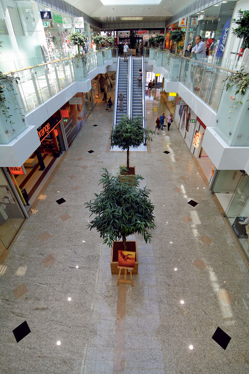 S prvými nákupnými centrami na Slovensku aj mestský parter dostal novú kategóriu v podobe nákupných galérií. Že aj tento priestor sa dá odbaviť veľmi stroho, ukazuje záber vľavo.