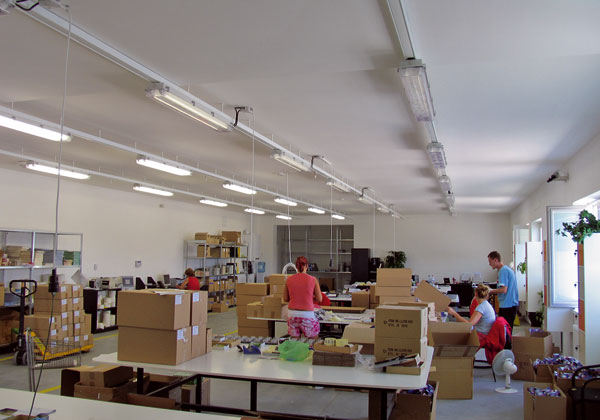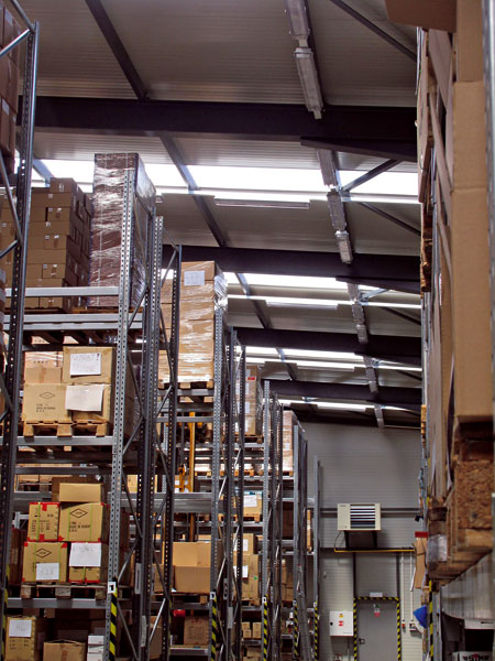 Na svetlo a pohyb. Keď cez svetlíky skladu prichádza dnu veľa slnečného svetla, senzor síce reaguje na pohyb, ale nezapne svietidlá, lebo intenzita svetla je dostatočná. Avšak keď sa intenzita prirodzeného svetla znižuje, senzor zvyšuje intenzitu vnútorného osvetlenia. Samozrejme, vo večerných hodinách spúšťa osvetlenie aj pohyb po priestore.