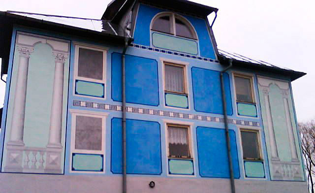 Našla som zopár „modrých“ domov. Keby stáli všetky pokope, povedala by som si: „Aha, konečne tematická štvrť (aj keď nešťastne tematická)!“. No tieto stoja každý samostatne, úplne v iných krajoch, dokonca aj v iných štátoch. Jeden je z malého mesta, druhý stojí na okraji malej dediny, tretí na frekventovanej hlavnej ceste, štvrtý v modernej zóne, piaty v štvrti hlavného mesta. Uhádnete, ktorý, je ktorý?