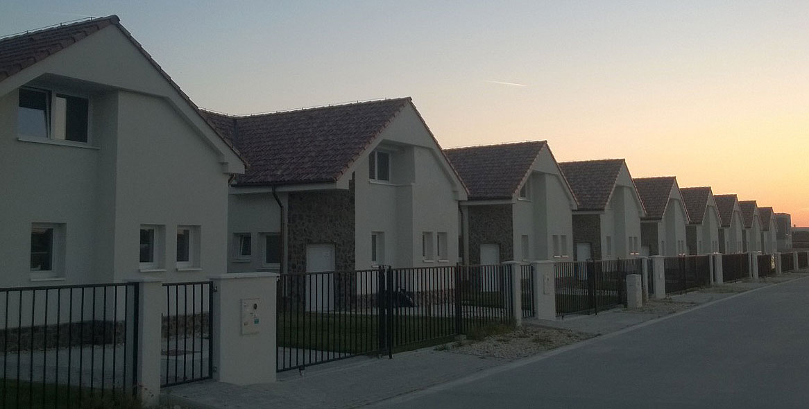 A keď som prešla o pár domov ďalej, hneď oproti luxusnej vile za státisíce eur stála „radovka“ alebo ako to nazvať. Nešťastná zástavba asi 15 rovnakých rodinných domov s malými oknami a veľmi zvláštne členenou fasádou. Napadlo mi, že to sú domy na prenájom, ktoré patria blízkemu golfovému centru. Inak si neviem vysvetliť, prečo sú všetky úplne totožné. Ale nie.