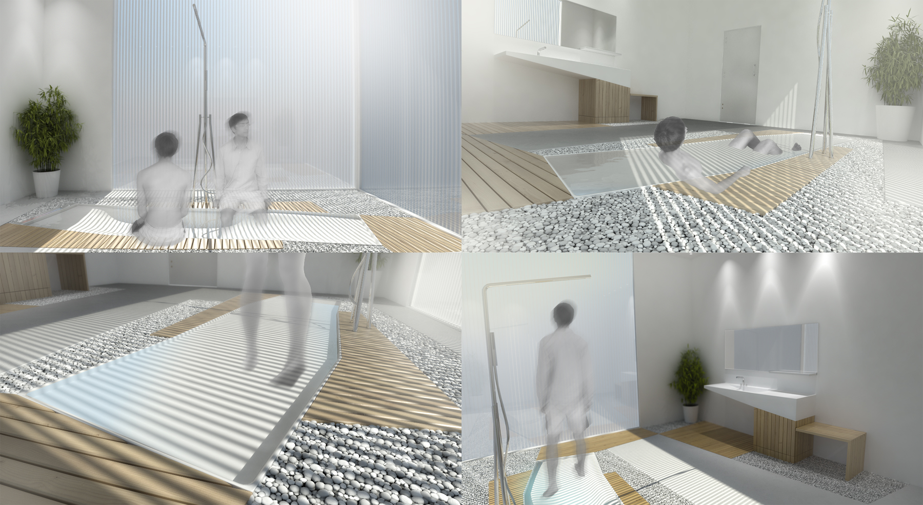 Navrhnutá vaňa prepája tri funkcie. Umožňuje ranné prebudenie prechádzkou po vodnom chodníku v studenej vode, dennú hygienu v sprche s dreveným roštom, okruhliakmi a kúpeľ. Dno vane je tvorené gumotextíliou. V strednej časti sa hydraulicky preliačením vytvorí hlboká vaňa.