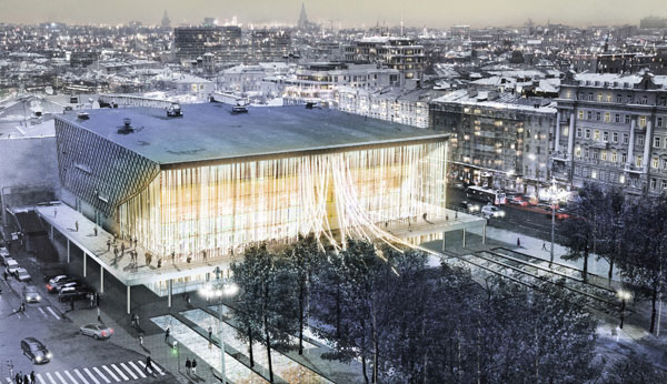 Víťazný návrh, ktorý do bodky naplnil výzvu pracovať bez predsudkov a zažitých stereotypov, je inšpirovaný Puškinovou básňou Zimné ráno a je oslavou schopnosti ruskej zimy premeniť silným mrazom krajinu na nepoznanie. Architekt túto fantastickú ilúziu vytvára s použitím high-tech povrchového materiálu DuPontTM Corian®. V zime zakrýva fasádu budovy kvapľová škrupina a v lete sa, naopak, z fasády rozprašuje voda, vďaka stovkám prvkov na kovovej konštrukcii a guliam z materiálu DuPontTM.Ďalšie dve ceny získali projekty Pohyblivý svetelný palác od nemeckých architektov Adriana Reinbrotha, Franzisky Boettcherovej a Jenny Grossmanovej a Puškinov klenot od Josepha Sunga z Južnej Kórey.