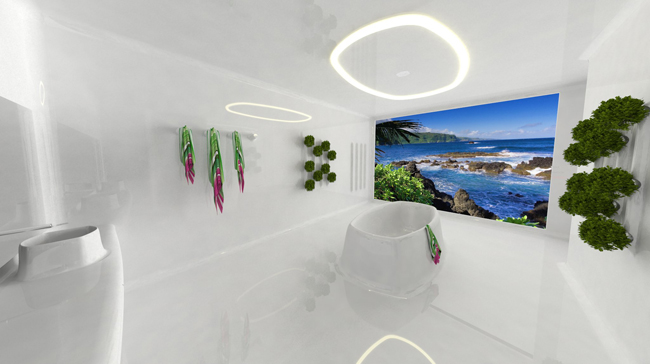 Na pretavenie návrhu do reálnej podoby sme mali dva a pol mesiaca. Vzhľadom na to, že ide o futuristický návrh, v súčasnosti neexistuje materiál, s ktorým by sme mohli môj návrh realizovať. Nakoniec sme sa dohodli na variante videoprojekcie. Tá umožnila predstaviť nápad a jednotlivé funkcie kúpeľne.