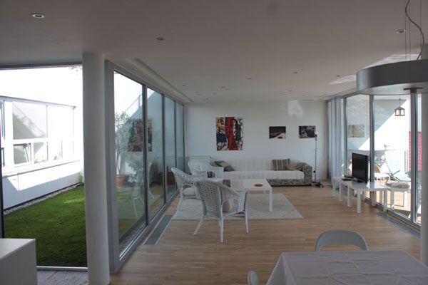 Autorova tvorivá filozofia je tu opäť premietnutá do jednoúrovňovej dispozície s užitkovou plochou 132 m2. Voľný vnútorný priestor, hoci neveľký, má svoju eleganciu. Malé patio priamo spája interiér s nebesami. Inšpirácia z nočnej oblohy ovláda celý stropný systém osvetlenia v podobe „hviezdičiek“ – zapustených bodových svietidiel.