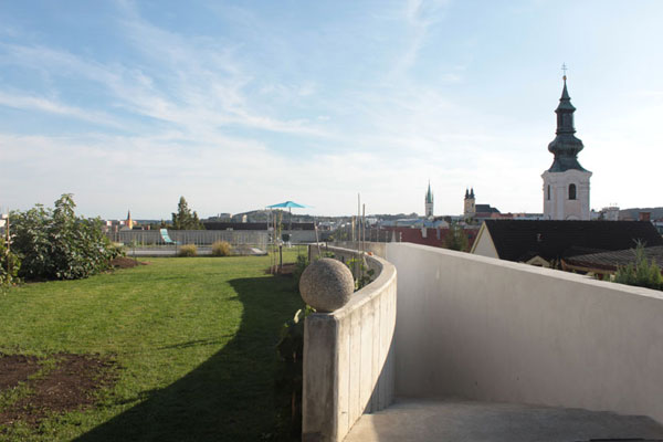 Rodinný dom Patio, situovaný pod nitrianskou katedrálou, stojí na Kráľovskej ceste číslo 10. Rešpekt pred historickým prostredím ho na južnom svahu skryl pod záhradu, takže len svojou celosklenou južnou fasádou sa tento nezvyčajný dom naplno otvoril mestu pod Zoborom.
