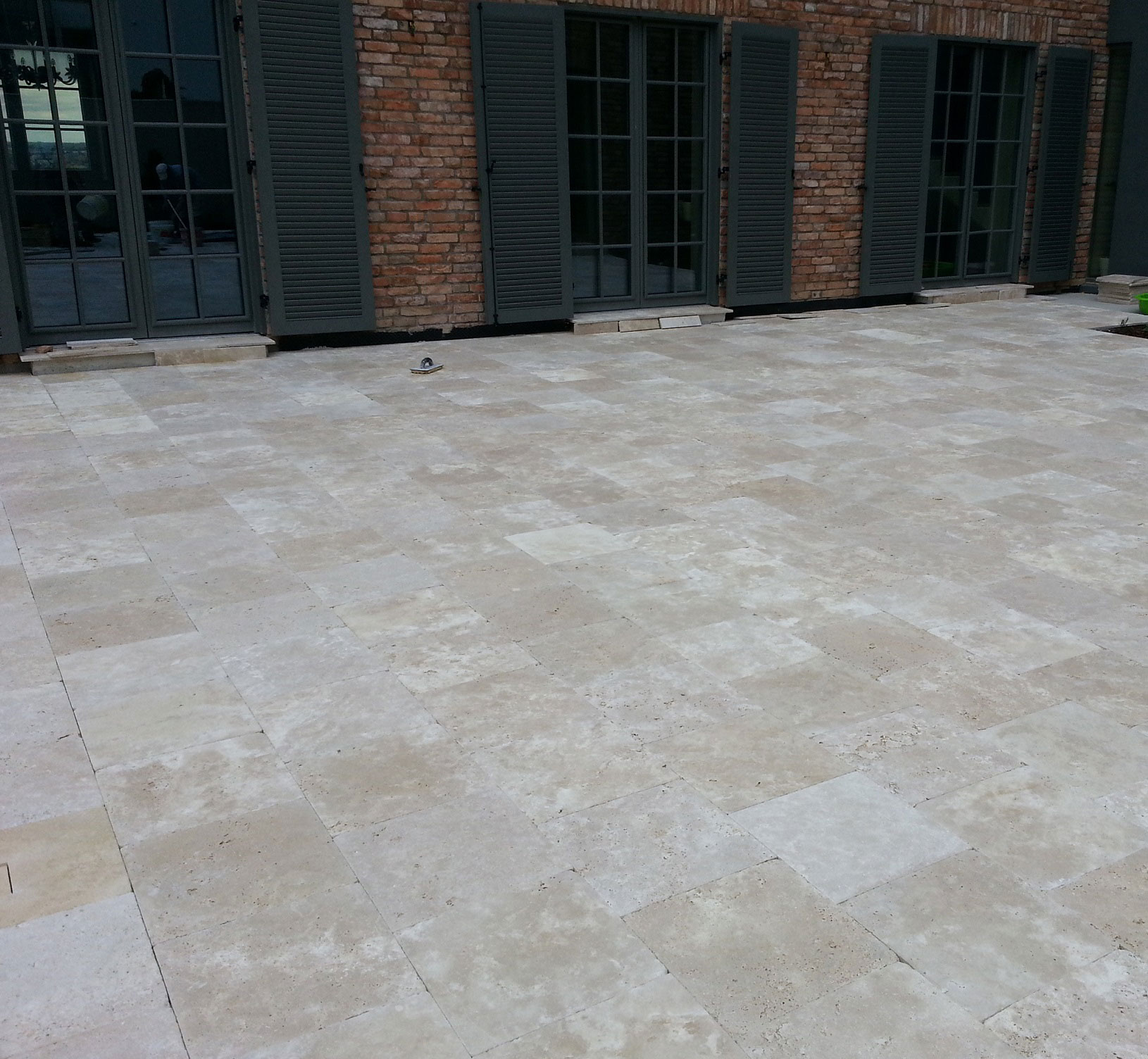 Dlažby na terasu z prírodného kameňa vynikajú svojím nádherným designom, veľmi dlhou životnosťou a minimálnou údržbou. V luxusnom segmente je veľmi obľúbený travertín