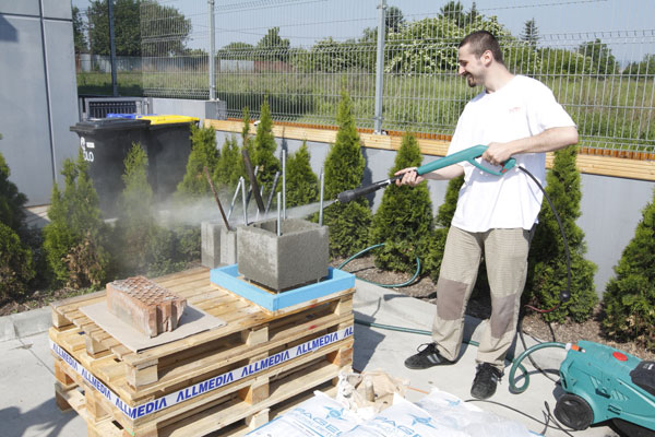 Tím ALLMEDIA prostedníctvom tejto ukážky poukázal na podceňované zásady (vlhčenie podkladu a ochranu zálievky pred účinkami slnka a prievanu), ktoré je nutné dodržať. Výsledky nedodržiavania týchto zásad bolo vidieť na poškodenom múriku oplotenia – nepravidelné trhliny, ktoré sa správnou aplikáciou zálievkovej malty PAGEL prostredníctvom ukážky „upravili“.