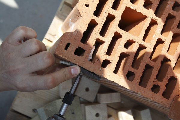 Kotvenie do keramických tvárnic je samozrejme možné aj využitím hmoždinkovej techniky, ale podľa uváženia a potreby do menej záťažových oblastí, a tak ALLMEDIA tím predviedol hmoždinkovú techniku nemeckého výrobcu TOX, ktoré okrem kotvenia do tehly (keramické tvárnice) nachádza využitie aj v kotvení do betónu a sádrokartónu, a vyznačuje sa trvalým zauzlením.
