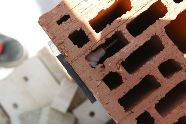Možnosti kotvenia do keramických tvárnic ALLMEDIA tím predviedol využitím chemických kotiev so sieťovanými puzdrami od nemeckého výrobcu MKT. Chemické kotvy možno použiť na kotvenie do dutej tehly.