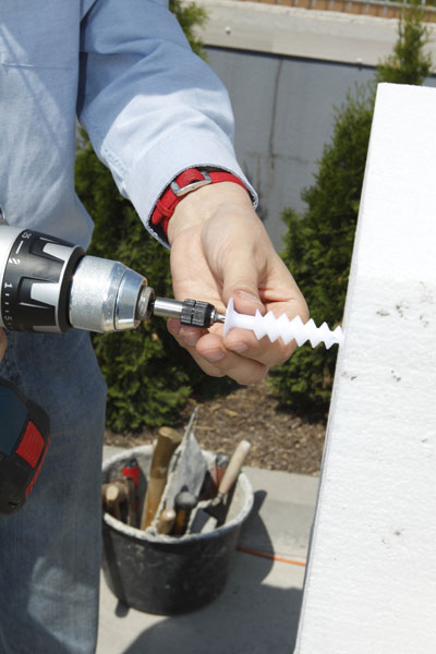 Kotvenie polystyrénu sa realizovalo pomocou samozávrtnej rozperky od nemeckého výrobcu TOX, typy A-ISOL/ISOL. Montáž možno realizovať bez predvŕtania diery. Rozperky sa používajú na prenos zaťaženia v rozmedzí od 2 do 5 kg. Nachádzajú tak uplatnenie pri uchytávaní ľahších predmetov na zateplenej fasáde bez potreby kotvenia v únosnom podklade.