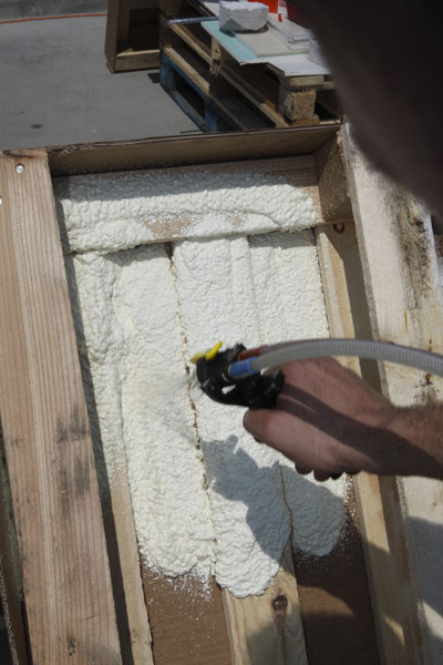 Predvádzanie aplikácie 2-zložkovej striekanej PU peny