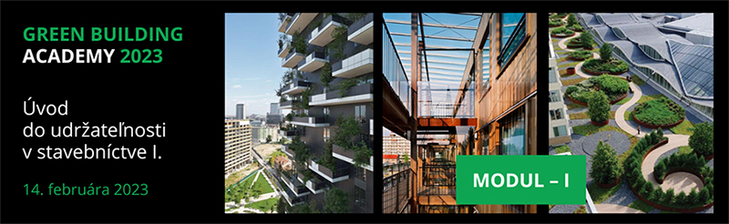 GREEN BUILDING ACADEMY 2023 predstavuje sériu siedmich online webinárov, v rámci ktorých sa prednášajúci zamerajú na rôzne aspekty udržateľnosti v stavebníctve. Je zameraná na vzdelávanie odbornej verejnosti, ale aj odborníkov mimo stavebného odvetvia, a na efektívnu diskusiu o ekologických, sociálnych a ekonomických aspektoch v udržateľnej výstavbe.