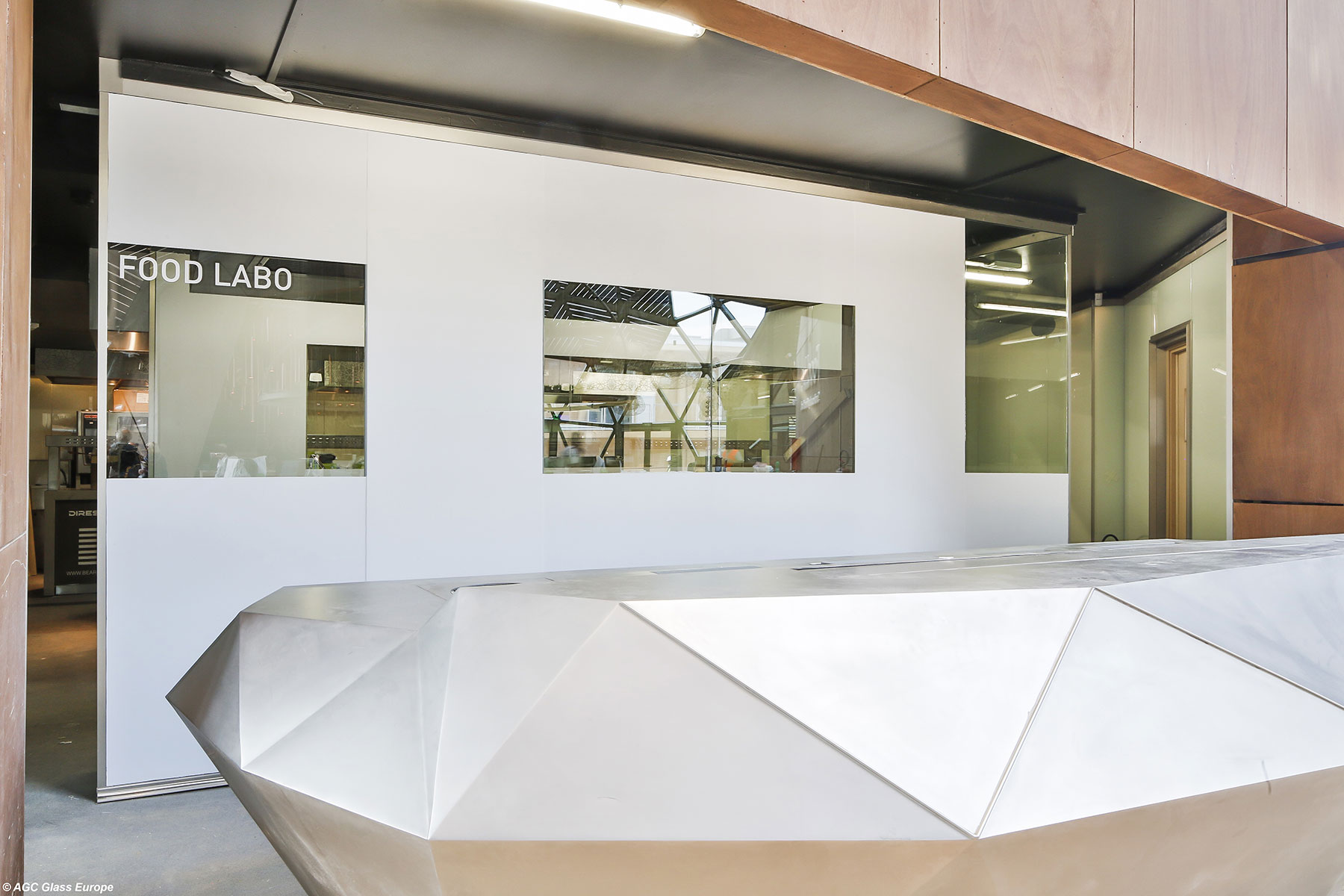 Ide o výrobok, ktorý nielen dokonale zapadá do témy tohtoročnej výstavy, ktorá sa sústredí na budúcnosť potravín (1) , ale je využitý aj ako high-tech obklad kuchyne belgického pavilónu. 106 m2 skla v lakovanej i transparentnej verzii (Lacobel AB a Planibel AB) použitých v belgickom pavilóne má výnimočný antimikrobiálny účinok, pretože dokáže zničiť 99,9 % baktérií vyskytujúcich sa na zvislých či vodorovných povrchoch. Toto patentované sklo, ktoré bolo vyvinuté na základe výskumov strediska AGC Technovation Centre, bude používané na zlepšenie hygienických podmienok pri príprave delikátnych potravín poprednými belgickými kuchármi a na manipulačných plochách počas šiestich mesiacov trvania výstavy EXPO.