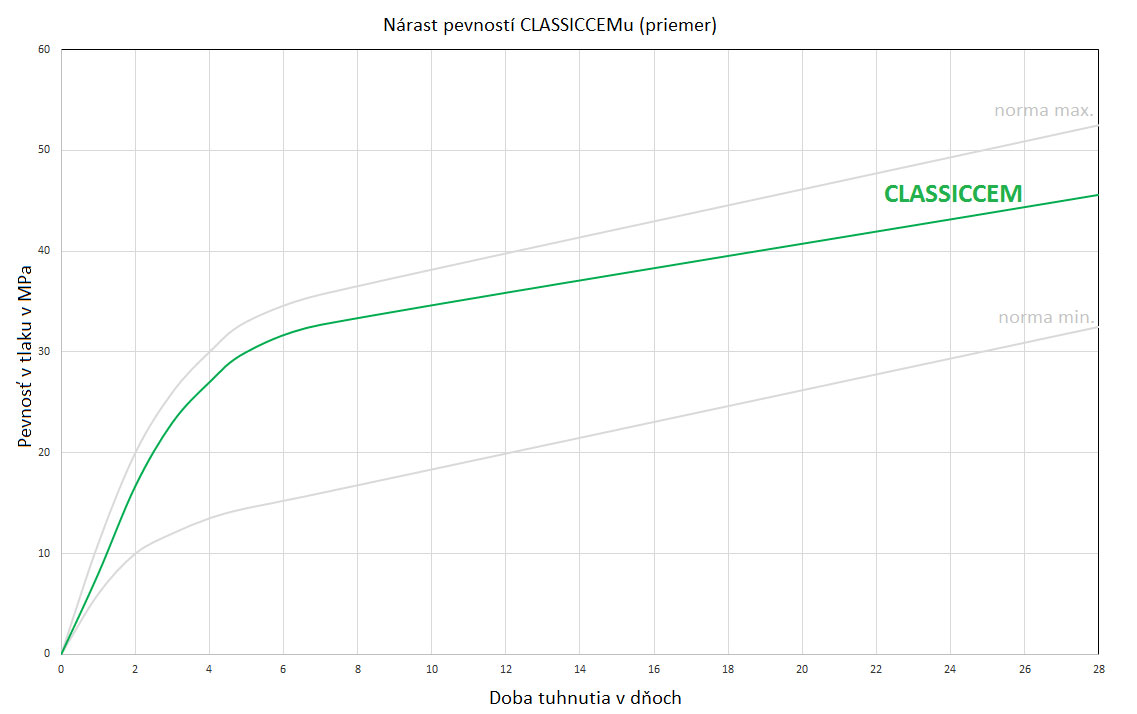 CLASSICCEM je univerzálny cement pre všestranné použitie s veľmi dobrou spracovateľnosťou, objemovou stálosťou a rýchlejším nárastom počiatočných pevností, určený pre všetky typy betónov a mált v bytovej a občianskej výstavbe.