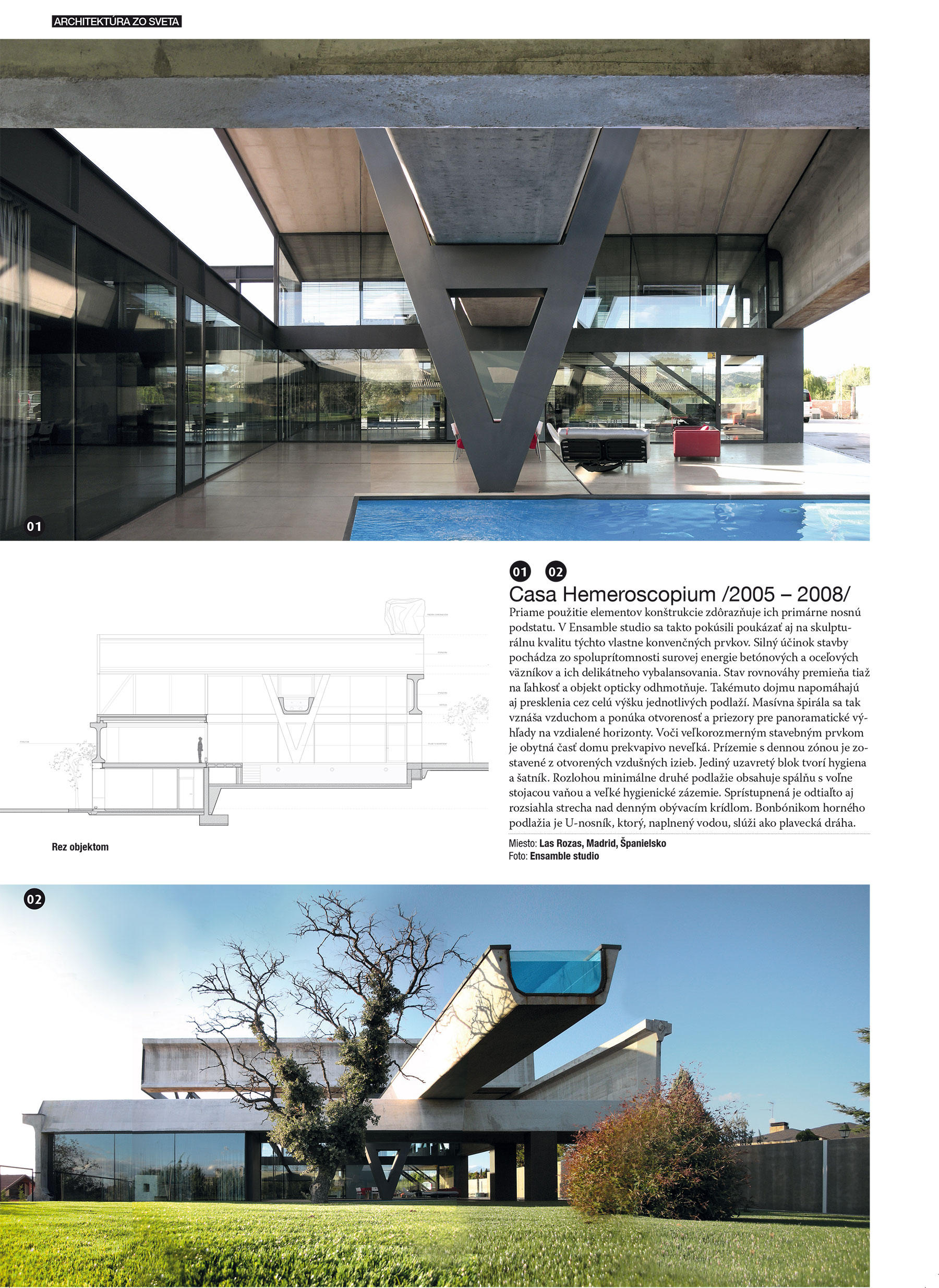 Naše marcové číslo je plné slovenskej architektúry a dizajnu a išli sme aj naprieč Európou. Kostol v nórskom meste Knarvik je nádhernou ukážkou dokonalej severskej kompozície, ktorá lahodí oku, životnému prostrediu aj miestnej komunite. Z druhého konca Európy prinášame dva neobvyklé projekty. Rodinný dom Hemeroscopium má veľký betónový nosník riešený ako plaveckú dráhu a La Trufa je chuťovka, ktorej interiér pre zmenu muselo najprv zožrať teľa menom Paulina.