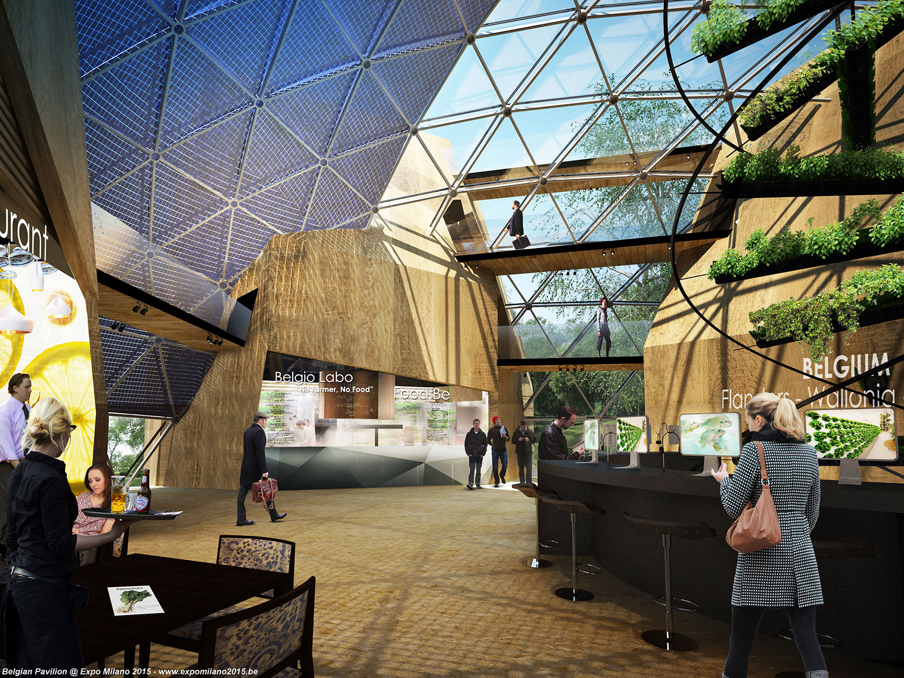Dekoratívne sklo AGC Glass Europe sa ukázalo byť populárnou voľbou pre deliace priečky vo vnútri pavilónov. V belgickom pavilóne sa môžu návštevníci v priestoroch venovaných belgickým špecialitám zapojiť do ukážok kuchárskeho umenia predvádzaných ocenenými belgickými šéfkuchármi. Hi-tech sklenené deliace prepážky v kulinárskej časti sú vlastne 100 m2 číreho AntiBakteriálnehoTM skla (Planibel AB) alebo bieleho lakovaného skla (Lacobel AB). Táto patentovaná technológia, ktorá spočíva v difúzii strieborných iontov do vonkajších vrstiev skla, eliminuje 99,9 % povrchových baktérií, čo je zásadné pre priestory, v ktorých sa denne spracúvajú čerstvé potraviny! V japonskom pavilóne bolo na 150 m2 priečok použitých kaliteľné lakované sklo Lacobel T Crisp White.