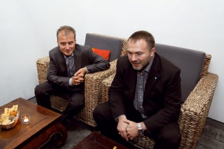 … zľava – Albert Priehoda a Peter Markovič zo spoločnosti Xella Slovensko, František Kmiť zo spoločnosti Premac a Anton Viazanko zo spoločnosti Durisol-Stav…  … Ľuboslava Osvaldová s manželom Robertom Osvaldom zo spoločnosti FINDOM-SK…
