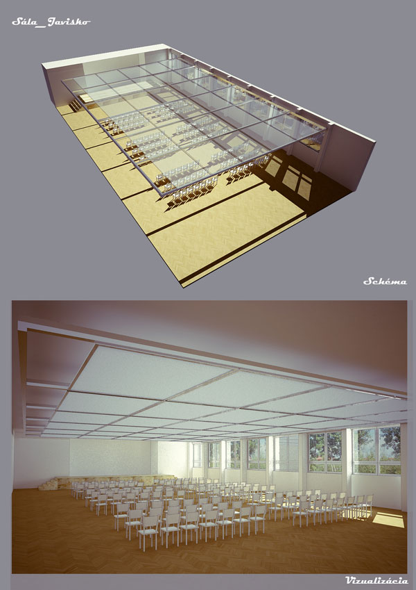 Variabilný strop v spoločenskej sále kultúrneho domu v Záhorskej Bystrici je nominovaný ako finalista súťaže Ce.Za.Ar 2011, avšak jeho riešenie dalo vzniknúť novému spôsobu riešenia interiérov veľkých spoločenských miestností.