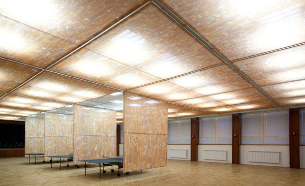 Rekonštrukcia interiéru kultúrneho domu či inej veľkej multifunkčnej sály stavia pred architekta náročnú úlohu: skĺbiť jestvujúcu stavbu s potenciálom používania miestnosti. Pri malých akciách môže byť priestor príliš veľký, rovnako ako v prípade potreby segmentovať miestnosť na menšie oddelené časti môžu dočasné zábrany pôsobiť akosi neprimerane. Architektonický ateliér Slabey ponúkol počas rekonštrukcie spoločenskej sály kultúrneho domu v Záhorskej Bystrici veľmi netradičné riešenie, ako skĺbiť potreby s možnosťami interiéru. Výsledkom je pôvodný slovenský systém sklopných interiérových panelov Variorior, ktorý sa dá využiť ako moderné riešenie stropu i výhodný polohovateľný systém umožňujúci rozdeliť miestnosť na menšie časti podľa aktuálnej potreby. ![]() |