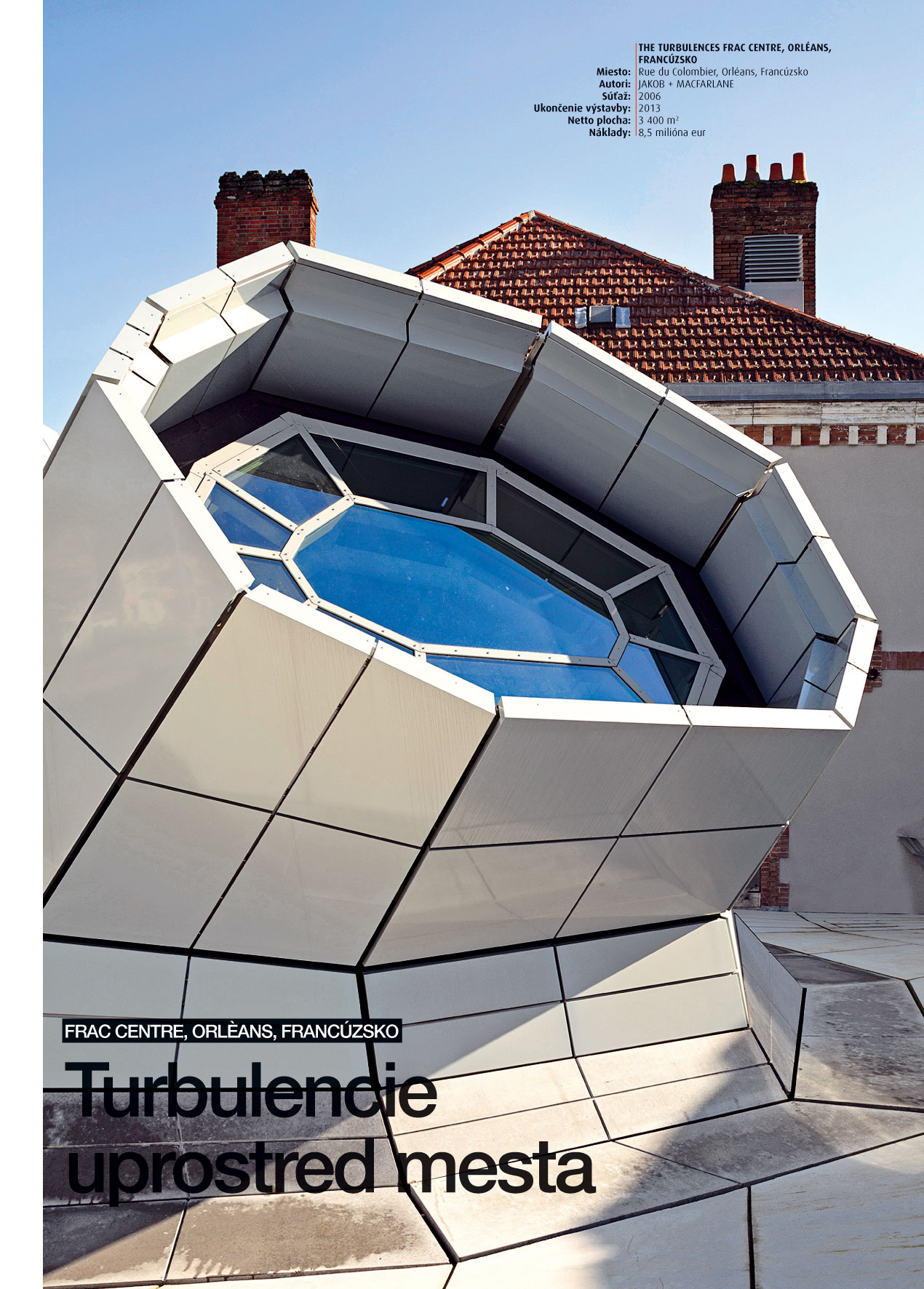 Jakob a MacFarlane vstúpili do historického jadra veľmi odvážne, doslova turbulentne. Nový názov centra Turbulences Frac Centre je odvodený od tubusového tvaru konštrukcií, pod ktorými vznikli nové priestory pre kaviareň, kníhkupectvo a auditórium. Netradičný, dynamický, ba až šokujúci novotvar má skvelý potenciál zaujať a pozvať návštevníkov na prehliadku súčasného umenia