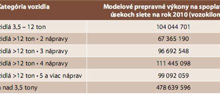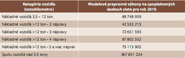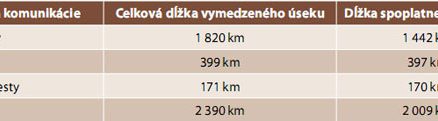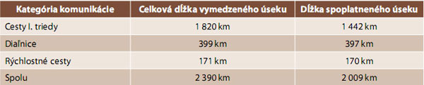 Tab. 1 Rozsah spoplatnenej infraštruktúry
