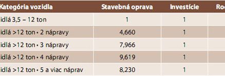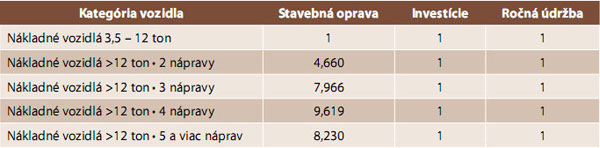Ročné náklady na stavebné opravy sa potom alokujú pre ťažké nákladné vozidlá s uplatnením príslušného koeficientu.