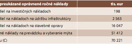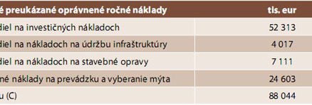 Ročné náklady na údržbu a náklady na stavebné opravy na spoplatnených úsekoch