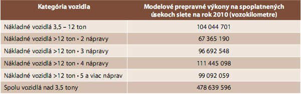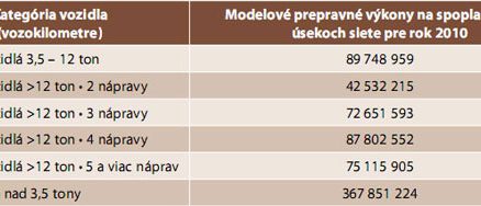 Náklady sa ťažkým vozidlám pridelili na základe objektívnosti a transparentnosti, pričom sa zohľadnila proporčná časť dopravy ťažkých vozidiel. Tá sa zistila na základe teoretického modelu prepravných výkonov, platného v čase prípravy nariadenia vlády SR č. 350/2007 Z. z. Model je spracovaný pre spoplatnené úseky diaľnic a rýchlostných ciest na základe výsledkov sčítania dopravy, realizovaného v roku 2005. Korigoval sa na očakávaný rast prepravných výkonov do roku 2010.