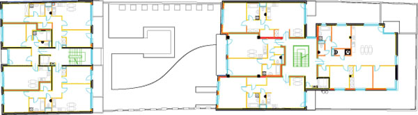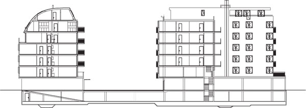 Zložité začiatkyPôvodný investor si dal u architektov vypracovať projekt na územné konanie. Parcela sa nachádza v pamiatkovej zóne v centrálnej mestskej oblasti. Najdôležitejším limitujúcim faktorom bol svetlotechnický posudok. Pri kompozícii hmoty sa architekti dôsledne držali požiadaviek na osvetlenie a preslnenie nielen novonavrhovaných priestorov, ale aj bytových jednotiek na susedných parcelách. Funkčnú náplň tvorili byty zodpovedajúce štandardu lokality. Neskôr prišlo v projekte k zmene investora. Ten mal odlišnú predstavu o skladbe a veľkosti bytových jednotiek. Územné rozhodnutie už bolo vydané, zásadné zmeny v koncepte návrhu by znamenali niekoľkomesačné zdržanie v harmonograme realizácie projektu. Na žiadosť nového investora sa teda projektanti pustili do mravčej práce, keď do existujúceho objemu vkladali nové dispozície s odlišnými štandardami. Vo dvoch obytných blokoch so šiestimi nadzemnými podlažiami a podkrovím je dnes 27 bytov a 9 apartmánov, na najvyšších podlažiach sú mezonetové byty s výhľadom na panorámu mesta. Podzemné podlažie je využité na parkovanie a priestranné pivničné kobky pre obyvateľov.
