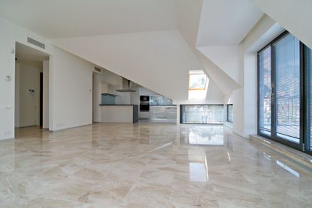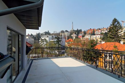 Uzdu fantázii mohli architekti popustiť najmä pri nadstavaných podkrovných podlažiach a práve tu využili netradičné riešenie umiestnenia súvislých pásových okien od úrovne podlahy po šikminu strechy. „Na toto riešenie nás inšpirovalo najmä to, že ak by sme v podkrovných bytoch nechali na presvetlenie iba strešné okná, cez ktoré videť len do neba, stratili by ste kontakt s okolitým svetom a pripravili by sme vás o krásny výhľad na mesto a samotné blízke okolie bohaté zaujímavou architektúrou a zeleňou. To by bola škoda,“ opisuje architektka Michaela Hantabalová dôvody tohto riešenia.