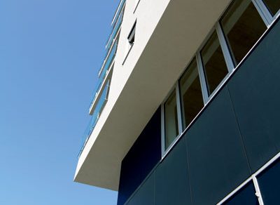 Fasáda v časti partera a 1. NP je vytvorená kombináciou hliníka, skla a obkladového materiálu Trespa. Na zvyšku fasády sa použila šľachtená omietka na zatepľovacom systéme. Na tienenie bytov z východnej, južnej a juhozápadnej strany slúžia hliníkové exteriérové žalúzie. Dôvodom ich použitia sú veľké okná s nízkym murovaným parapetom vo výplniach okenných otvorov. Zasklené plochy sú v kompozične prehľadne a harmonicky členené a nakombinované s doplnkovými horizontálnymi pásovými plnými prvkami parapetov.