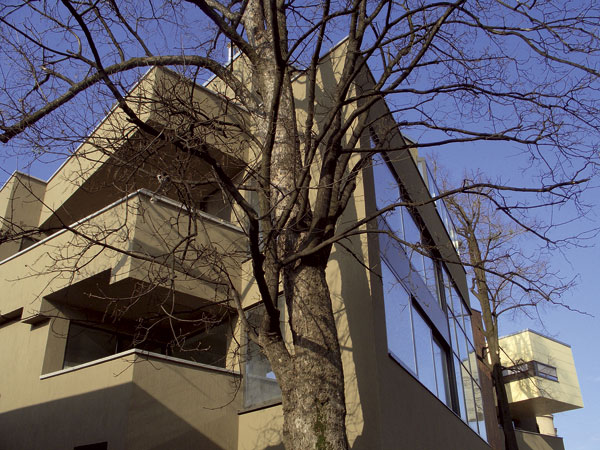 K tejto členitosti prispieva nerovnomerné rozloženie terás so zreteľným umiestnením ťahavej zelene a stromčekov. Farebnosť fasády v kombinácii drevených prvkov a keramických obkladov má charakter už spomenutej filozofie „zeleného domu“, ktorá je prispôsobená okolitej atmosfére parku. Dá sa povedať, že architektonický výraz sa odvíja od výzoru stromov, ktoré nielen rámcujú fasádu, a tým pôsobia na vonkajšie vnímanie objektu, ale tri z nich priam vrastajú do jeho hmotovej štruktúry.