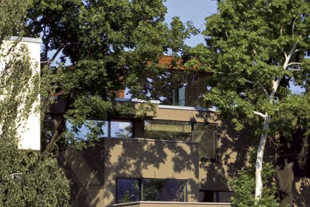 „Prepojením a včlenením hodnotných existujúcich stromov do tela stavby sme sa snažili vytvoriť architektonické dielo s filozofiou zeleného domu harmonizujúceho s okolitým parkom,“ hovorí spoluautor projektu architekt Štefan Pacák.
