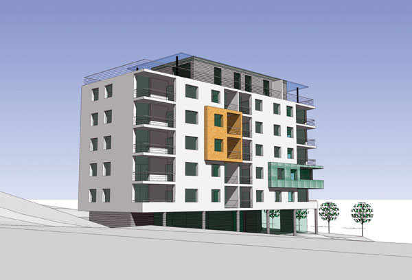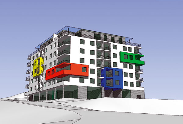 Dom bude mať sedem nadzemných podlaží a výškovo doplní existujúcu okolitú zástavbu.Typicky mestský parter navrhovaného bytového domu bude slúžiť pre malé prevádzky služieb vyššej občianskej vybavenosti. Architektonický výraz vytvorí jednoduchá biela fasáda, oživená vystupujúcimi farebnými alebo materiálovo odlíšenými hmotami.